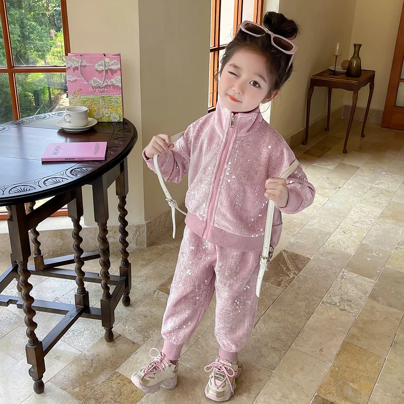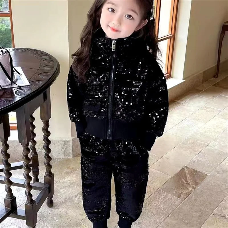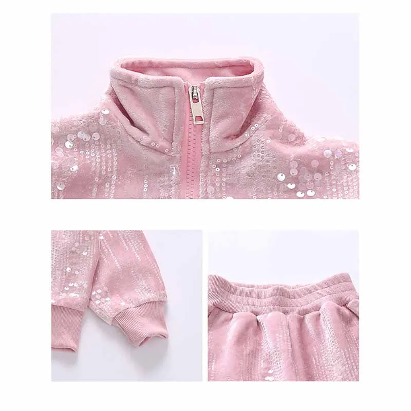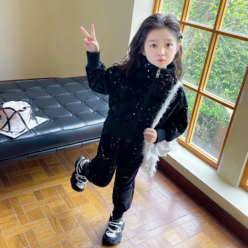Children Baby Clothes Sets Girls Fashion Suit New Spring Autumn Outfits Kids Sequins Coat Pants 2Pcs Kids Sports Costume