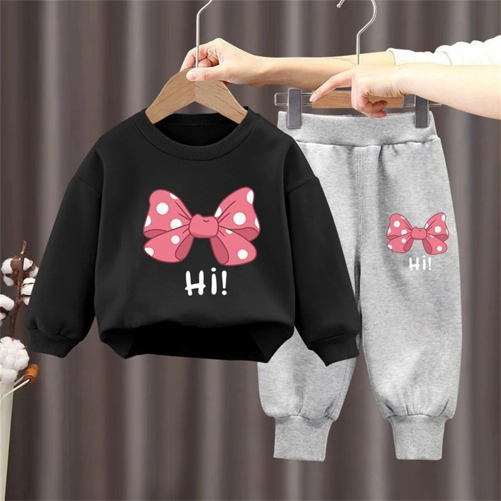 Spring Autumn Toddler Girl Tracksuit Bow Print Clothes Set 2PCS Long Sleeve Top and Pants Girls Outfit Sets Children Tracksuit